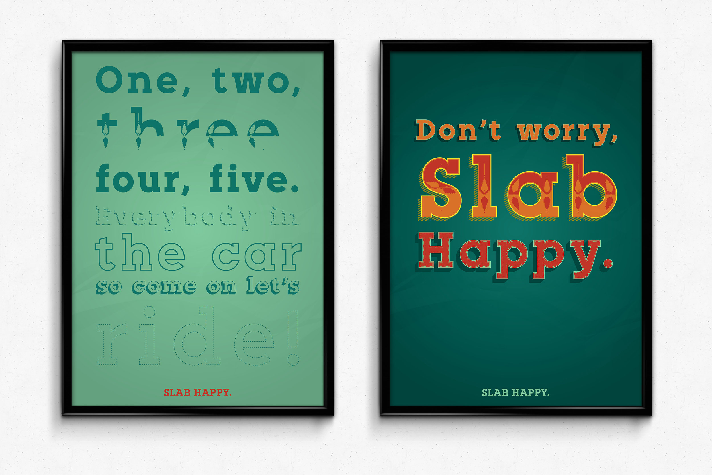 The complete Slab Happy family is now available on MyFonts, YouWorkForThem, and Fontspring.